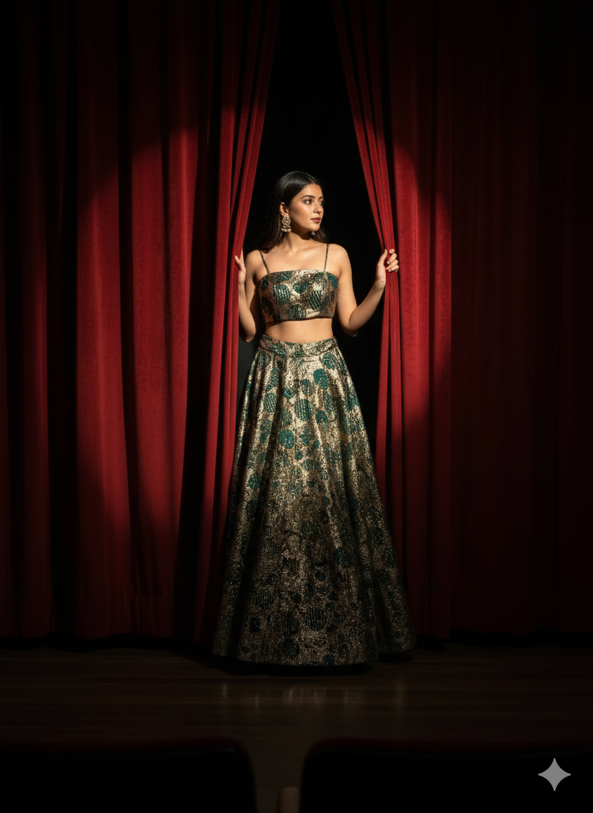 Teal Sequin Embellished Lehenga Set – Vinisha Rao Designer Studio