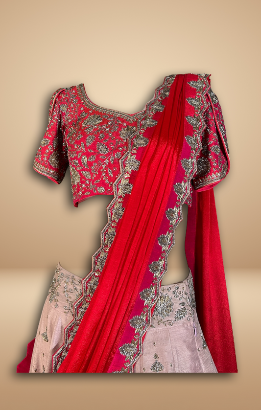 Exquisite Red and Ivory Lehenga with Detailed Embroidery