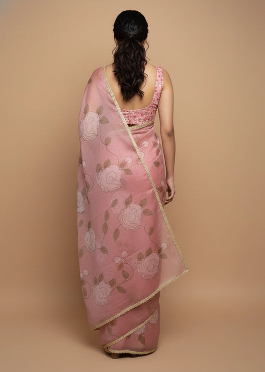 Blush Serenity Organza Saree – Vinisha Rao Designer Studio