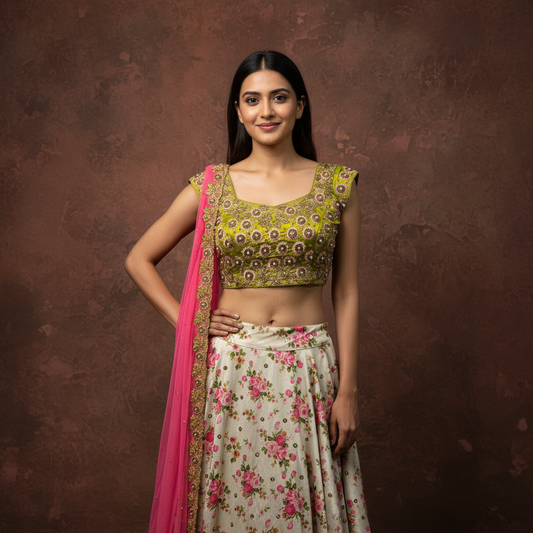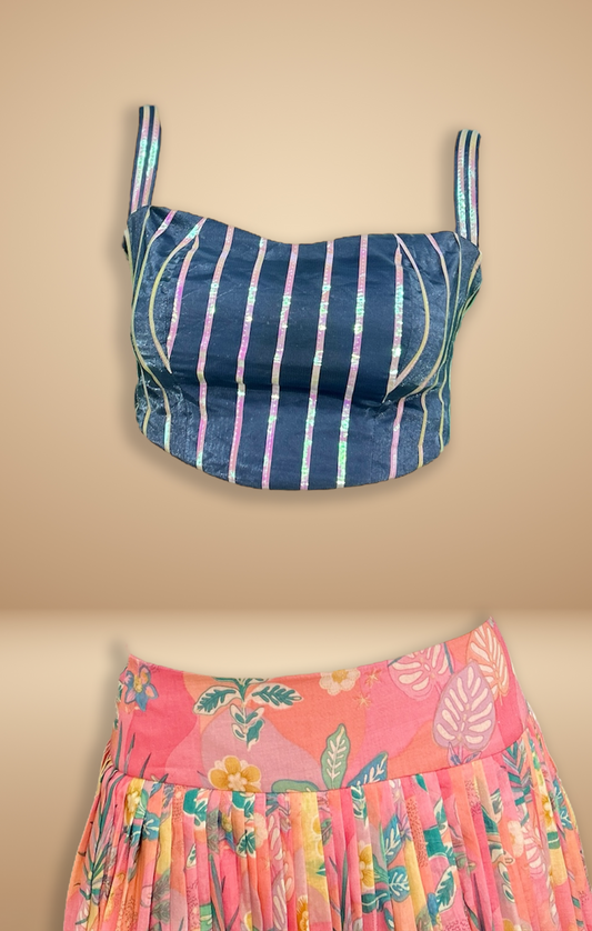 Radiant Bloom Lehenga Ensemble (Organza Crop Top and Georgette Lehenga)